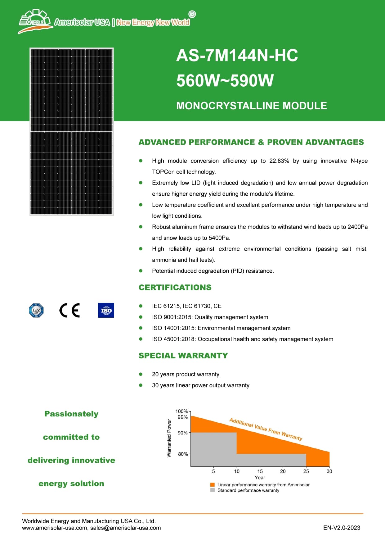 Amerisolar AS-7M144N-HC – 585 W n-type TOPCon monocristallin