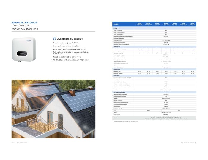 SOFAR 3K-6KTLM-G3 est la version améliorée de la série d’onduleurs résidentiels SOFARSOLAR. Avec son design élégant IP65 et son refroidissement naturel pour un fonctionnement silencieux, l’onduleur est parfaitement adapté aux petites installations résidentielles.